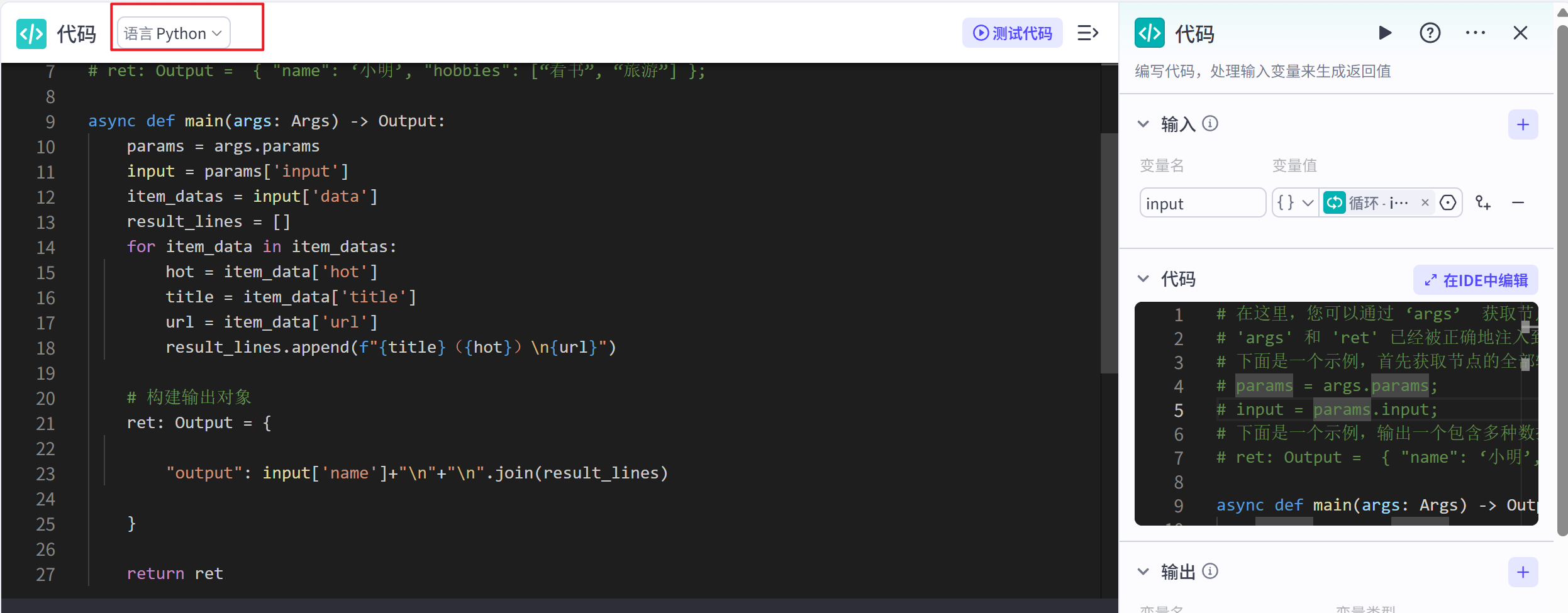 循环体,需要处理的是“热搜榜聚合” 获取到的各家热榜新闻数据。