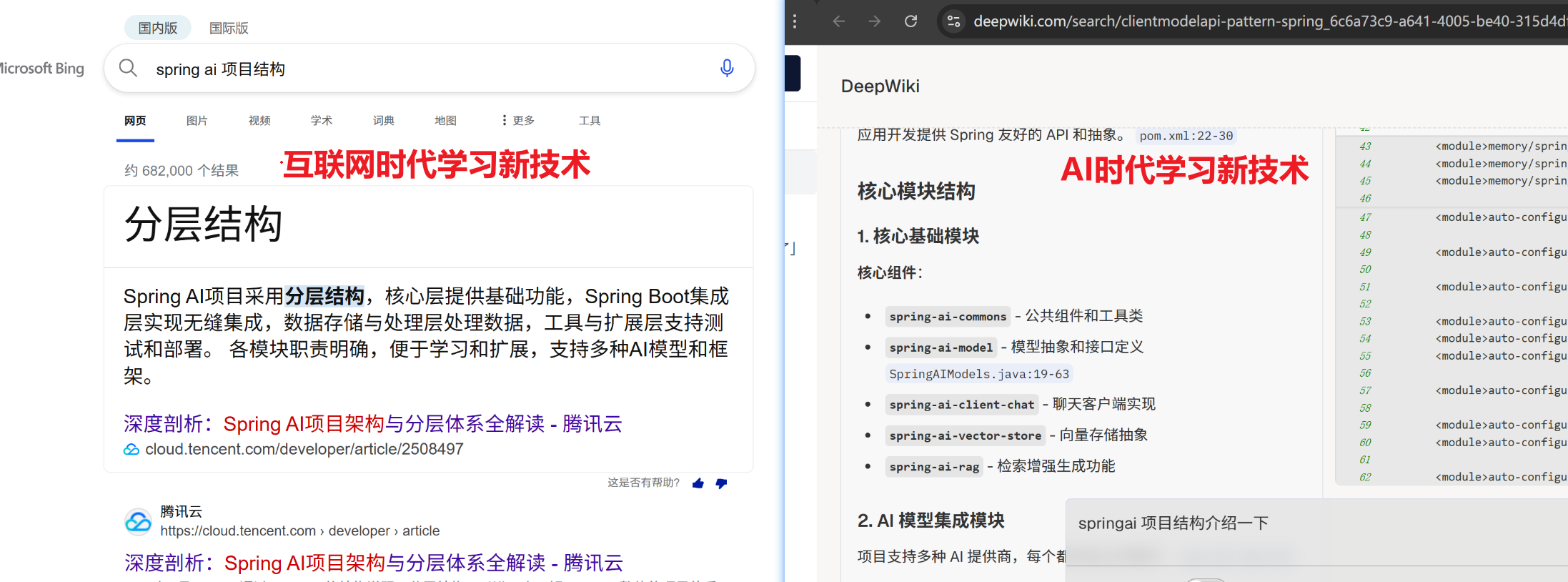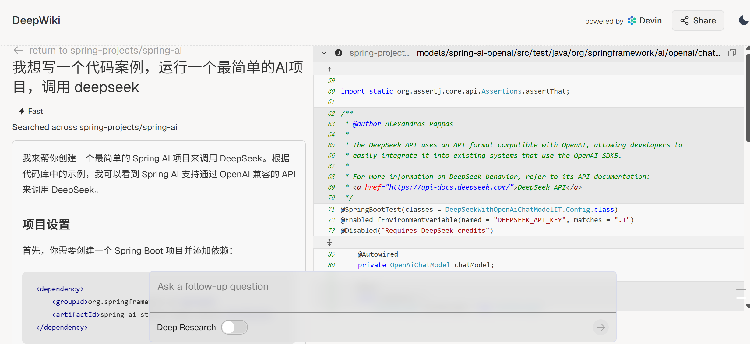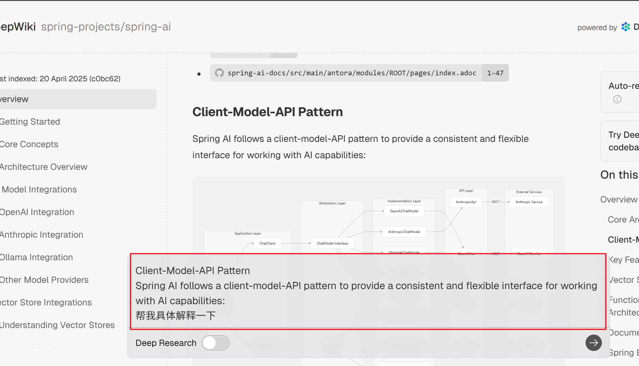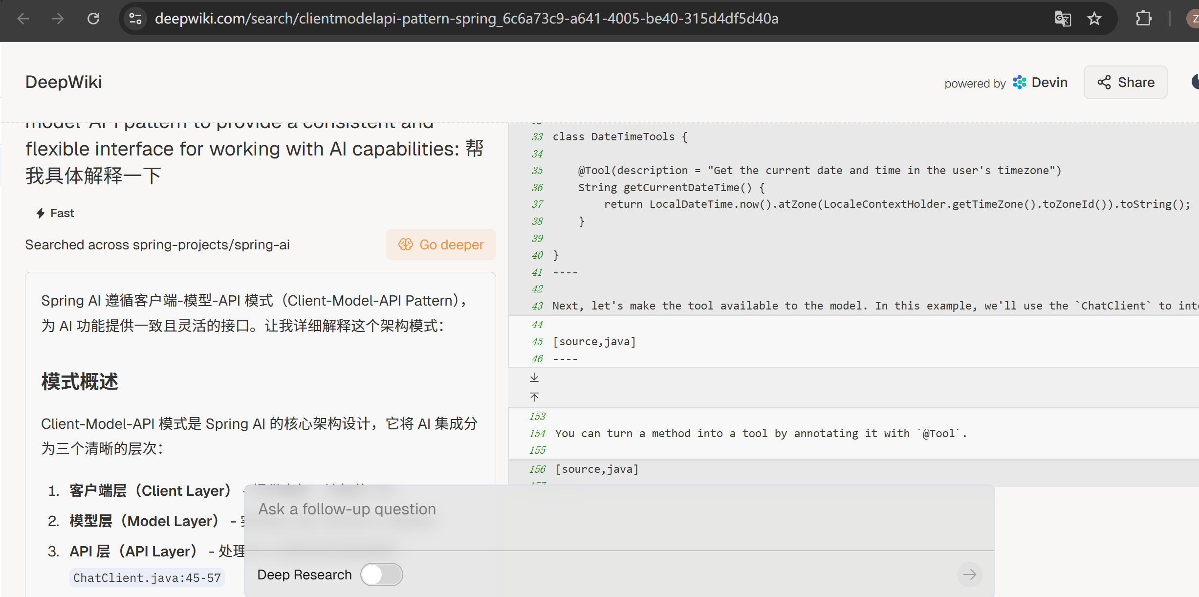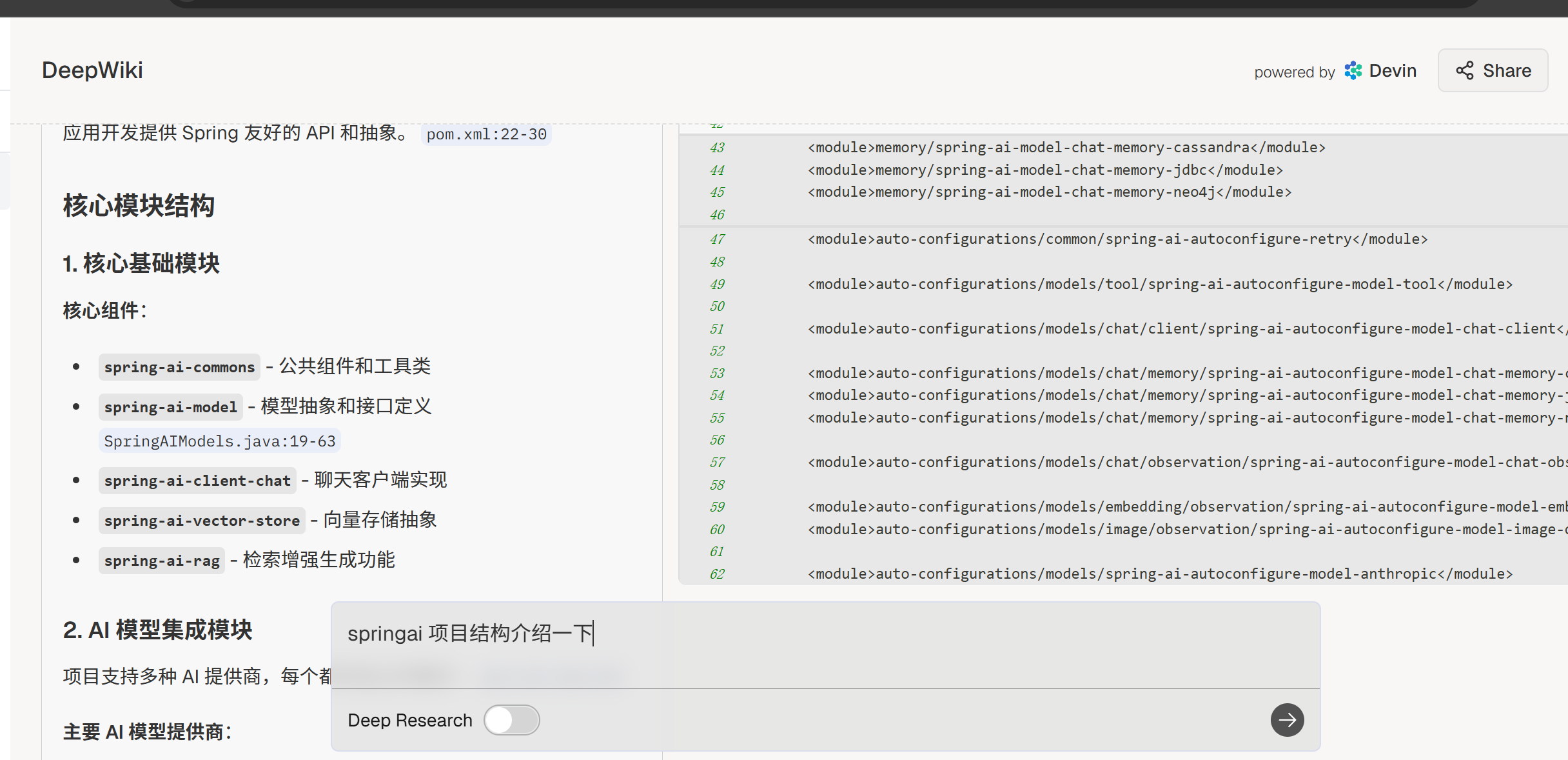 https://deepwiki.com/spring-projects/spring-ai回车,等几秒——自动生成「模块依赖图」、文件树、核心类关系图。