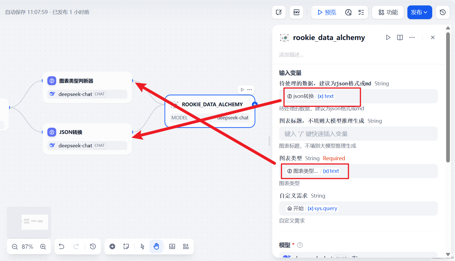 输出节点:将图表输出到聊天窗口中。