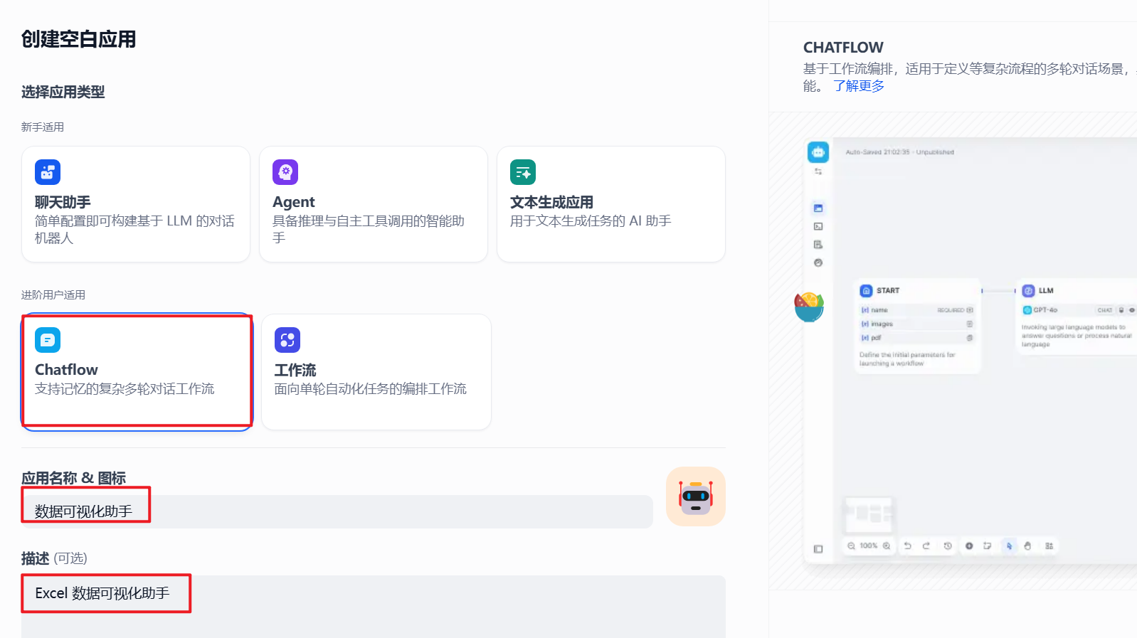 第二步:填写 Chatflow 信息