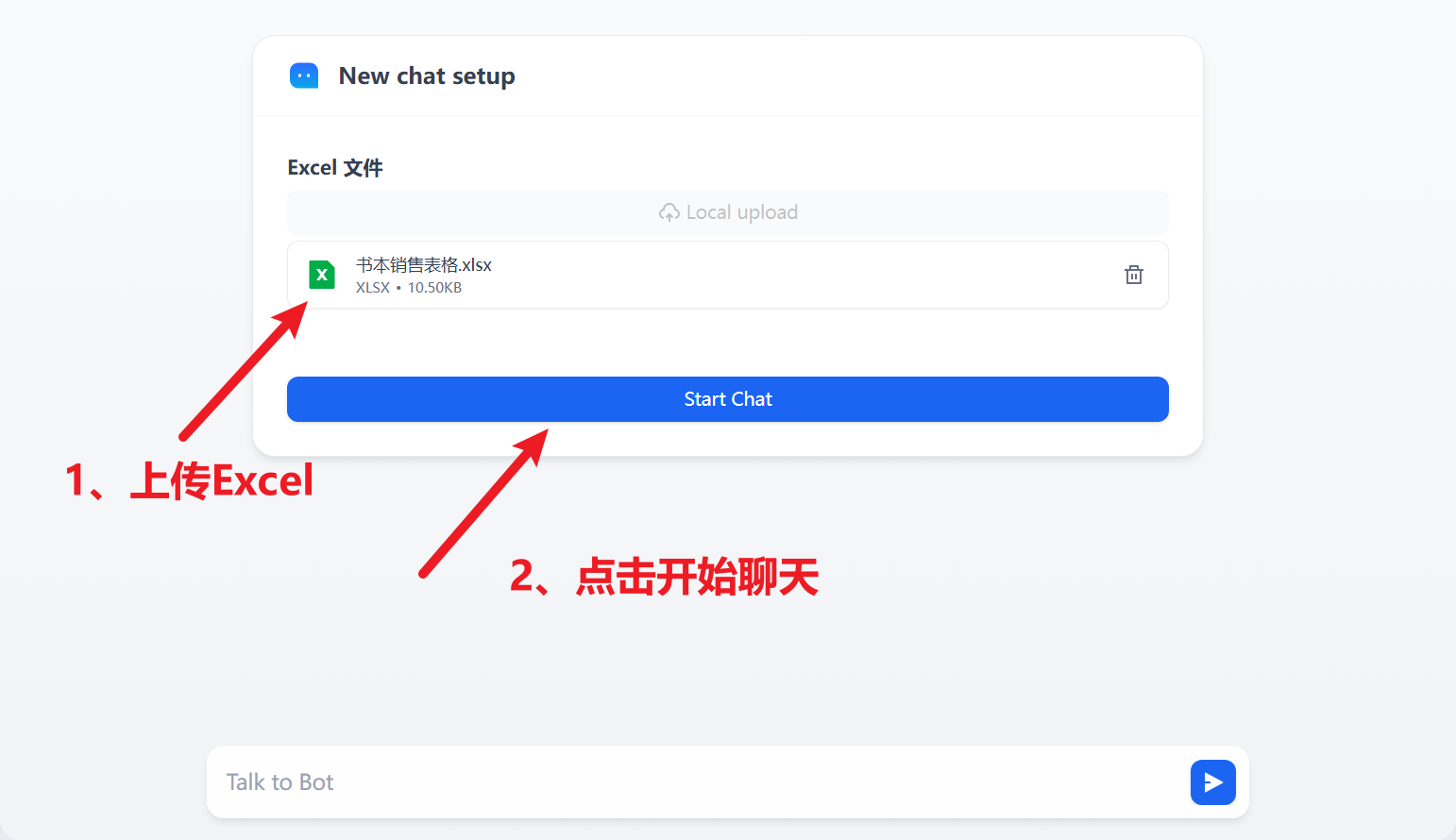 开始节点:用户上传Excel 表格,并填入用户需求