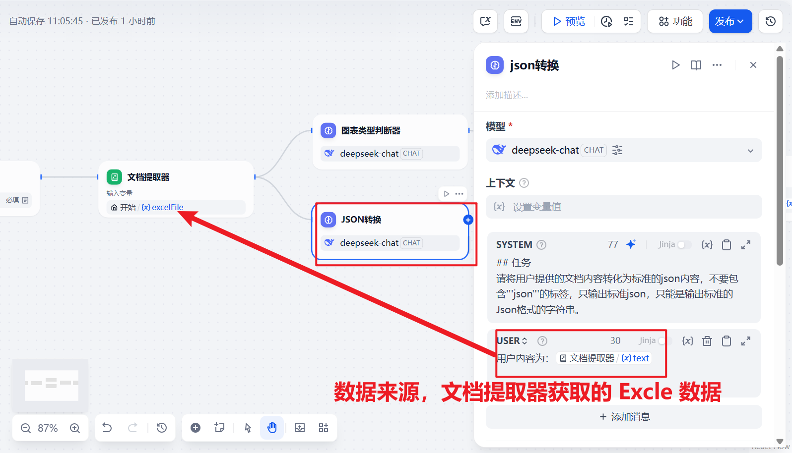 “JSON转换” ,也是一个 LLM节点。